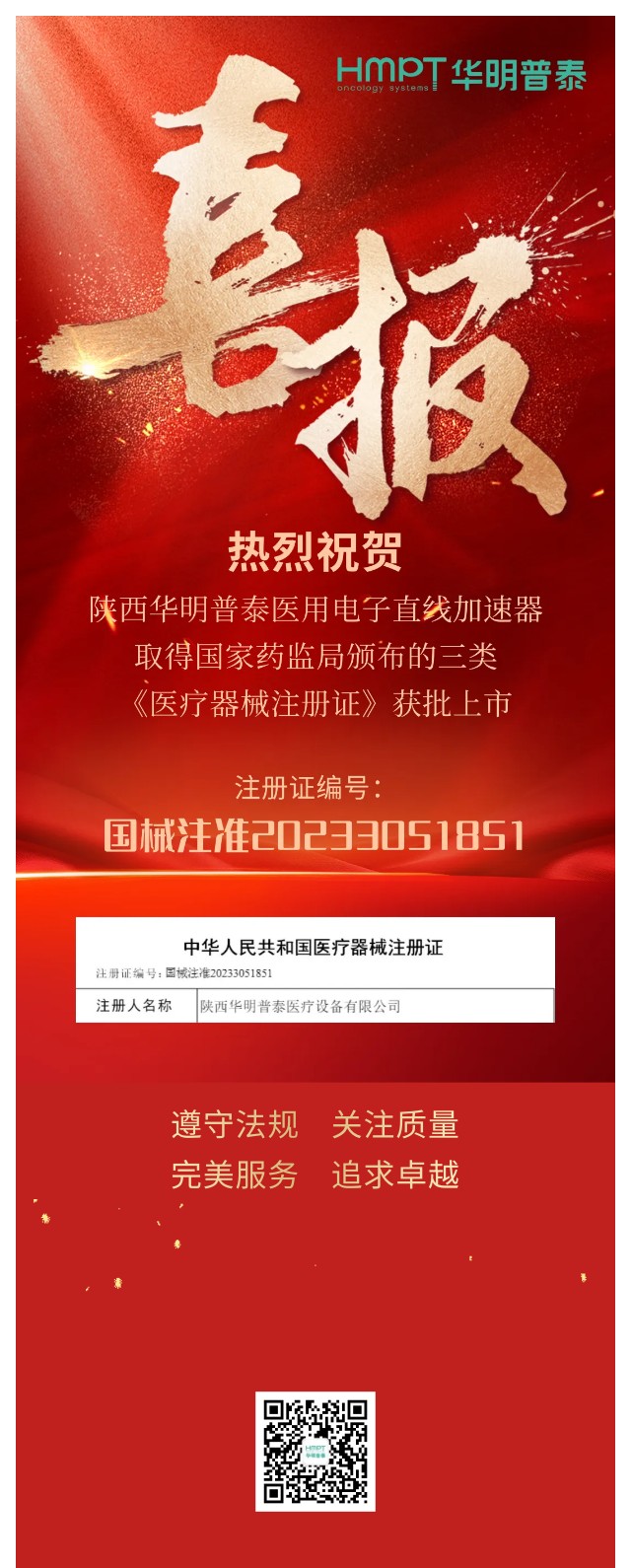 喜報(bào):陜西華明普泰醫(yī)用電子直線加速器獲批上市